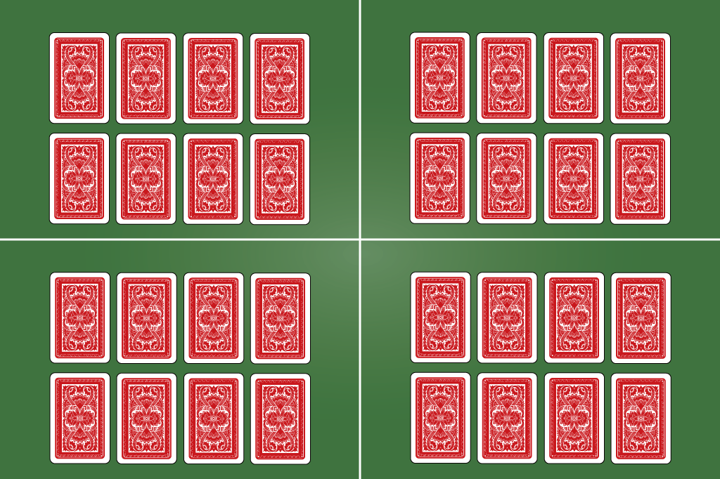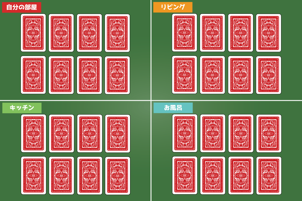 まずは、トランプが置いてあるエリアを4分割してみます。