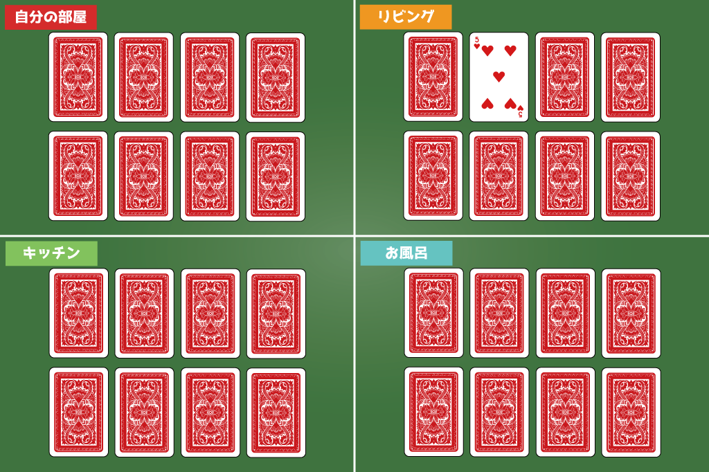 「リビングのエリアに、ハートの5」をイメージして覚えます。