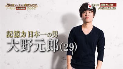 1時間で数字1,624桁が完璧に暗記できるメモリーアスリート。だが実は、合格率90%の『自動車運転免許』の筆記試験に2度の不合格を経験したことがあり、人一倍記憶力の悪い人間だった。その出来事がきっかけで、自身の記憶力を高めたいと決意。当時の世界チャンピオンから直接、記憶の奥義を教わり、2016年には記憶力日本選手権で優勝。