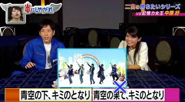 「嵐にしやがれ内、歌唱シーン20種類の曲名と衣装を記憶」で対決。