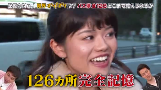 「ギリギリ」に出演した時には、バス停の名前126ヵ所を、